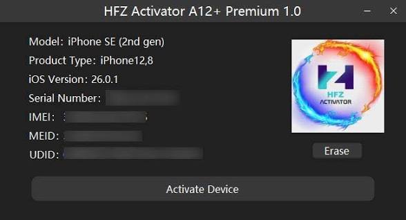 HFZ Activator A12+ Premium Outil Windows – Contournement du signal pour iPhone et iPad (Tous les modèles A12) – AUCUN REMBOURSEMENT EN CAS D’ERREUR