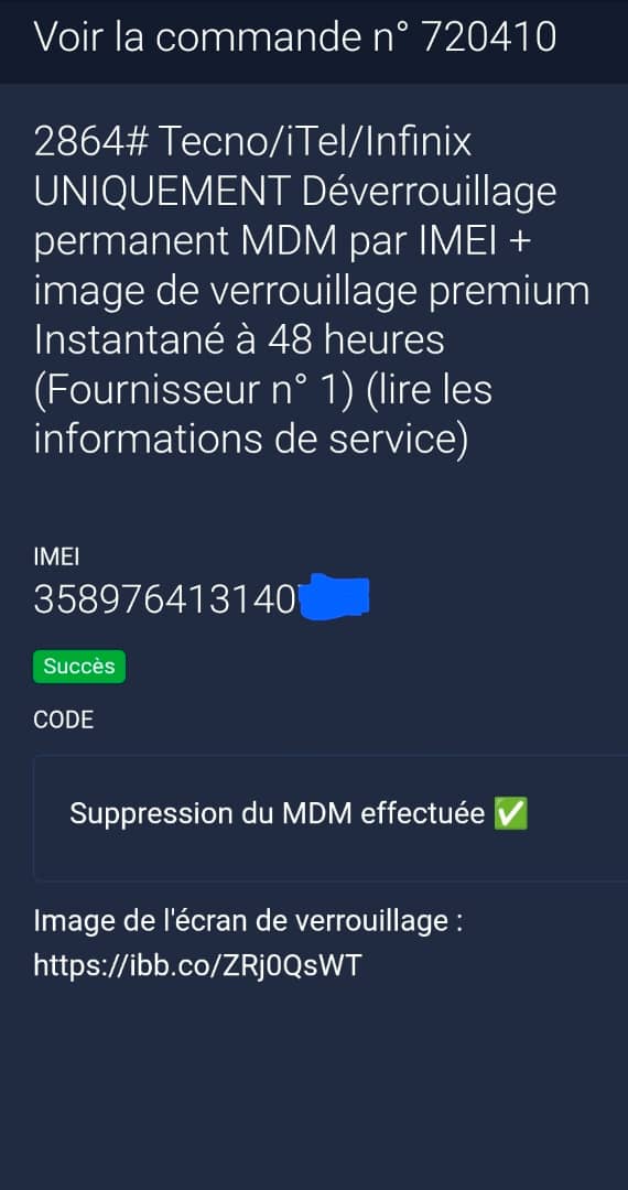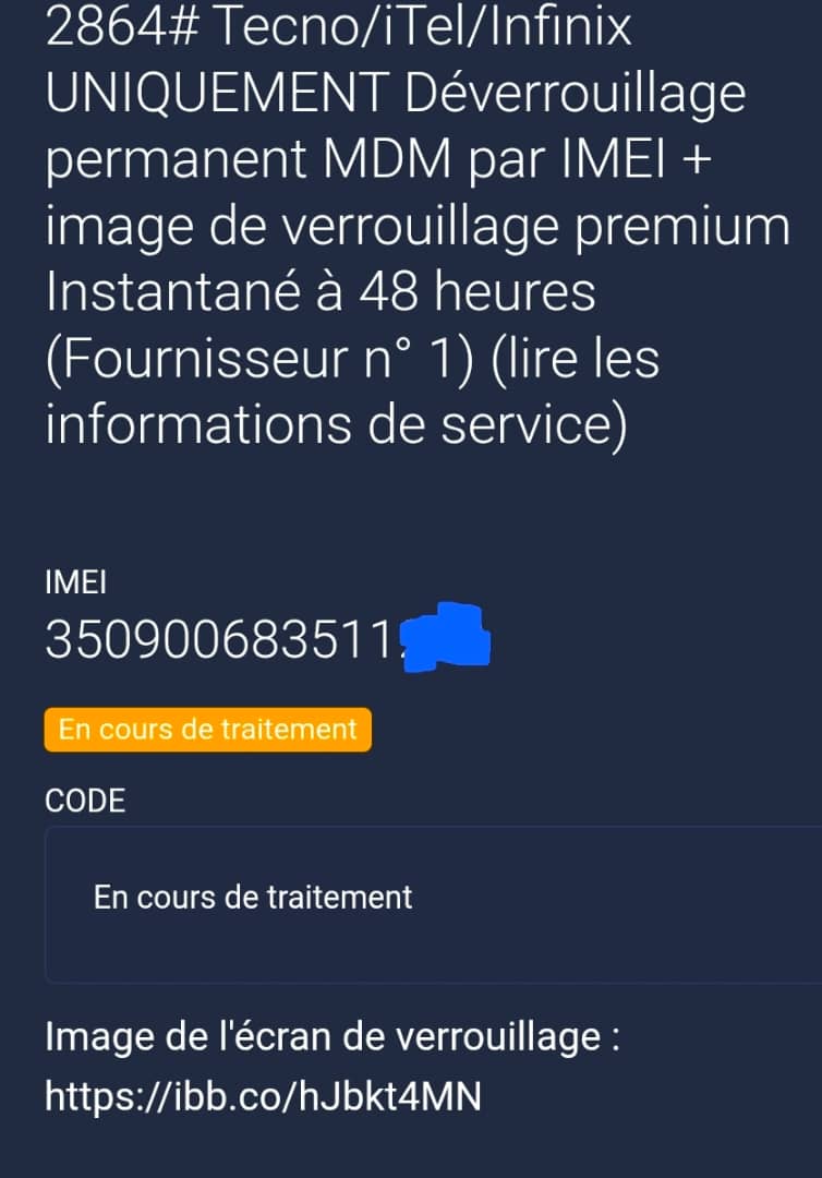 Tecno / Infinix / Itel MDM Déverrouillage permanent par Imei +Photo